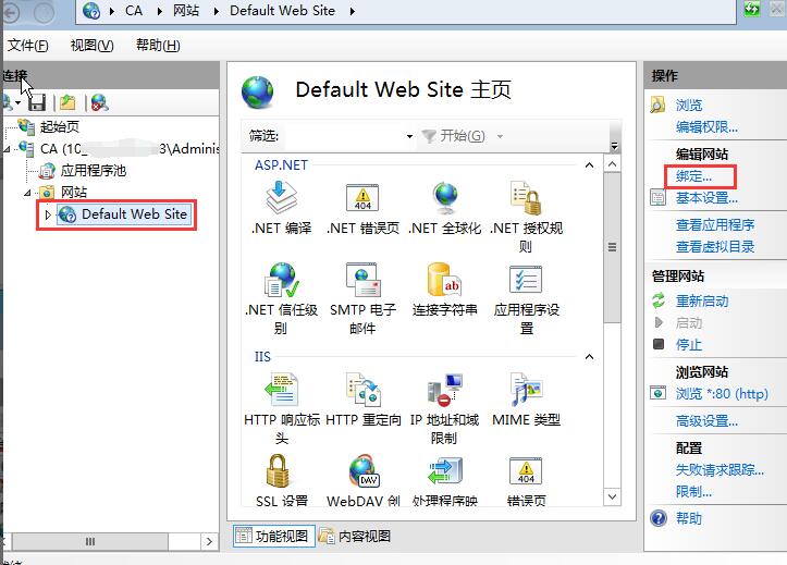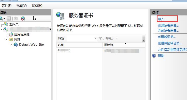 打開IIS服務管理器,點擊計算機名稱,雙擊‘服務器證書